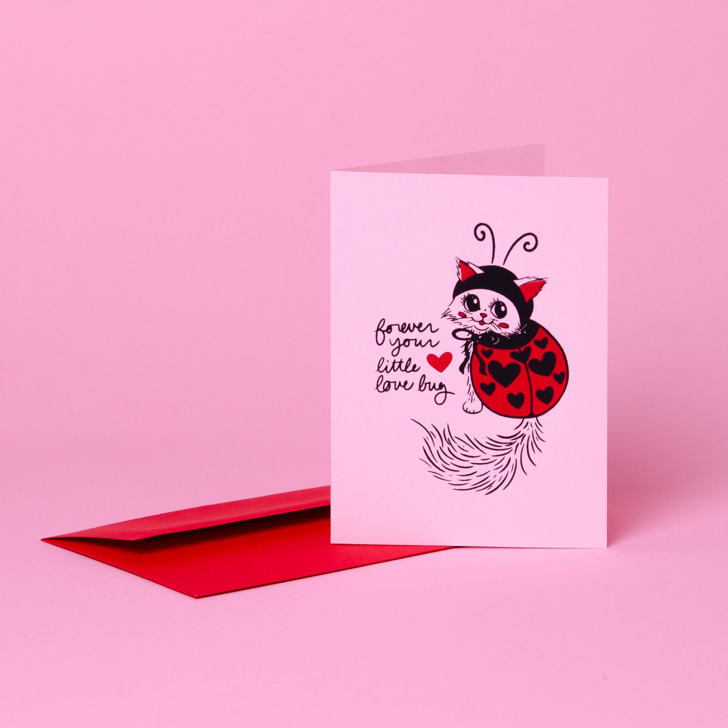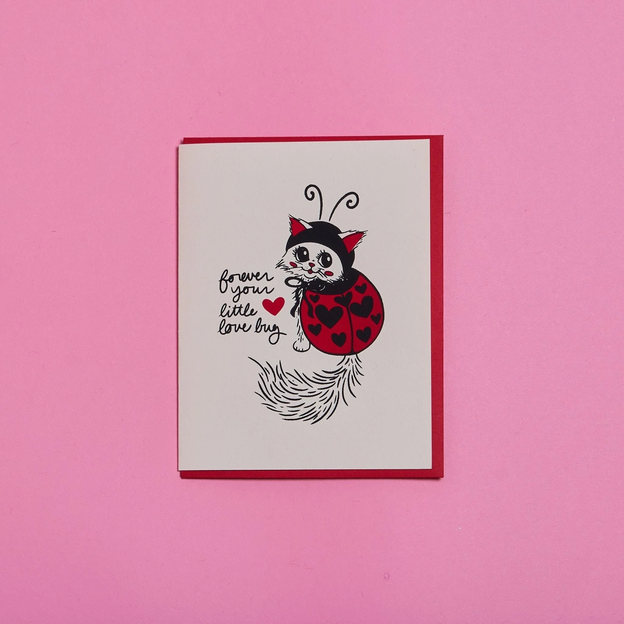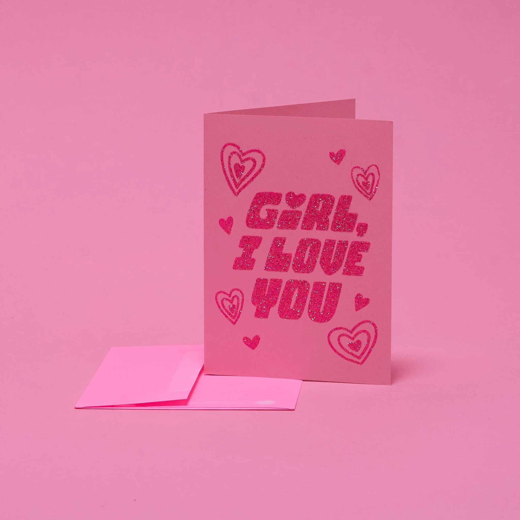 "You Give Me Butterflies" handmade greeting card. Perfect for Galentine's or Valentine's Day! Screenprinted and glittered by hand in 2025. Contains one card with a matching envelope. Interiors are blank. Size: A2 4.25 in.x 5.5 in