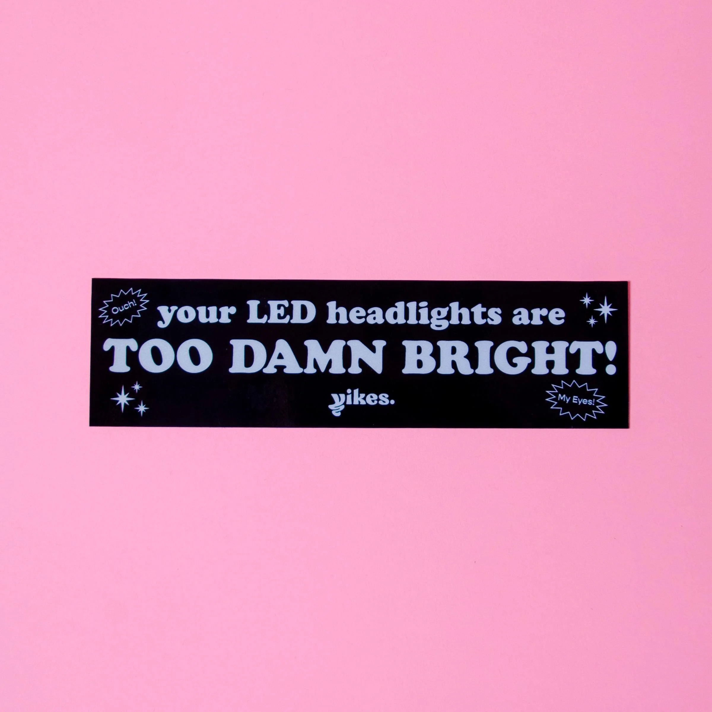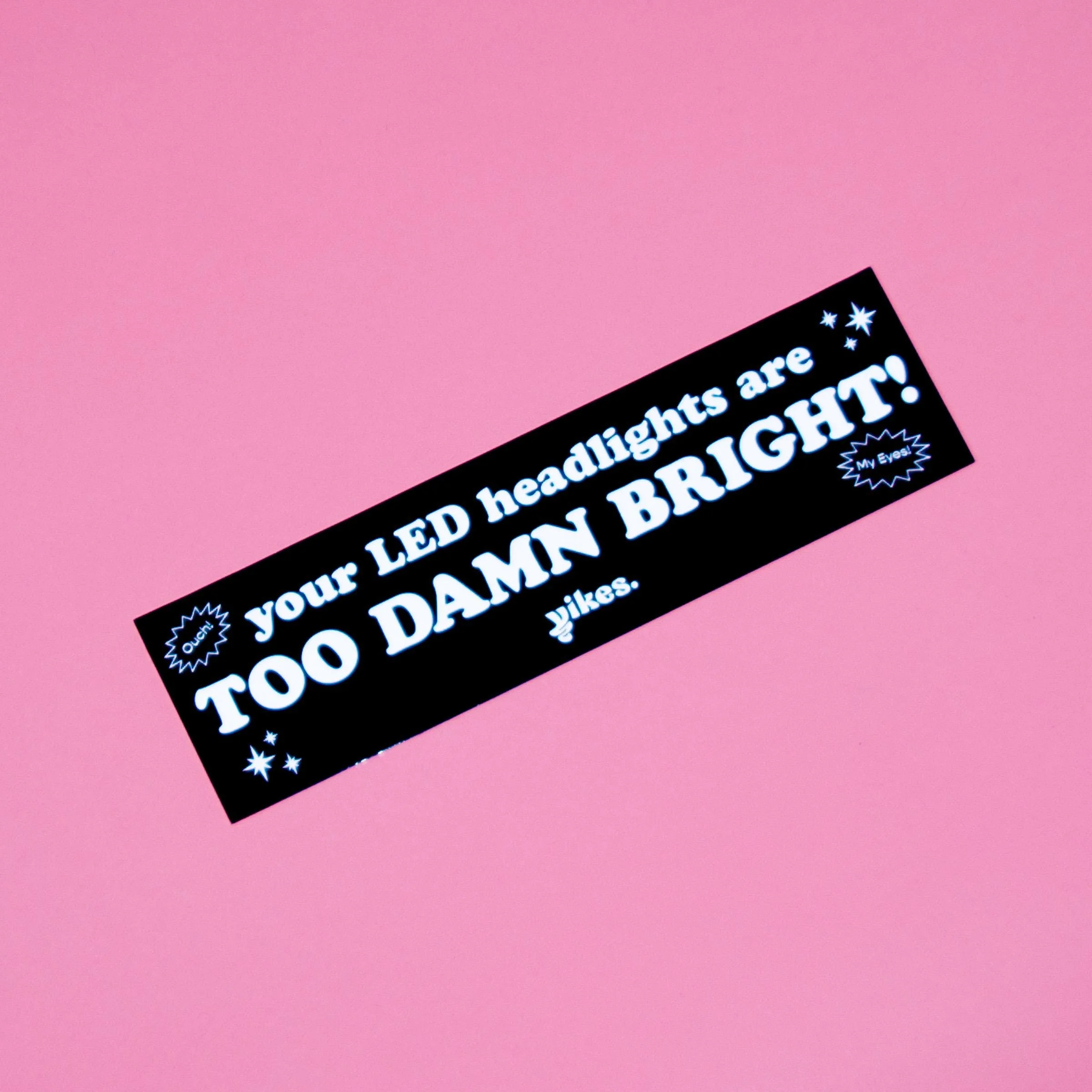 "Ouch! Let other drivers know their LED headlights are too damn bright with this REFLECTIVE bumper sticker! Initially unsuspecting, this sticker is sure to be seen with its reflective letters.
